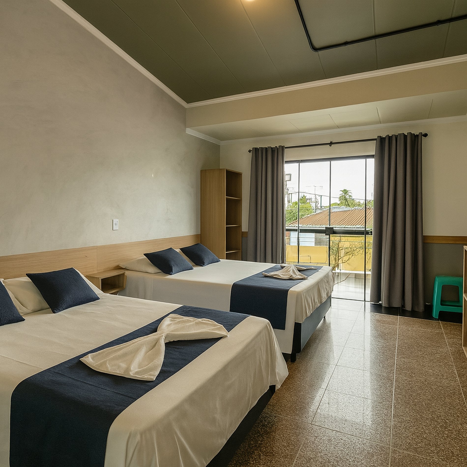 Nosso diferencial é a mini cozinha em todas as suítes, equipada com micro-ondas, frigobar e utensílios. Isso permite aos hóspedes economizar em refeições e desfrutar da conveniência do delivery, tornando sua estadia confortável e econômica.
