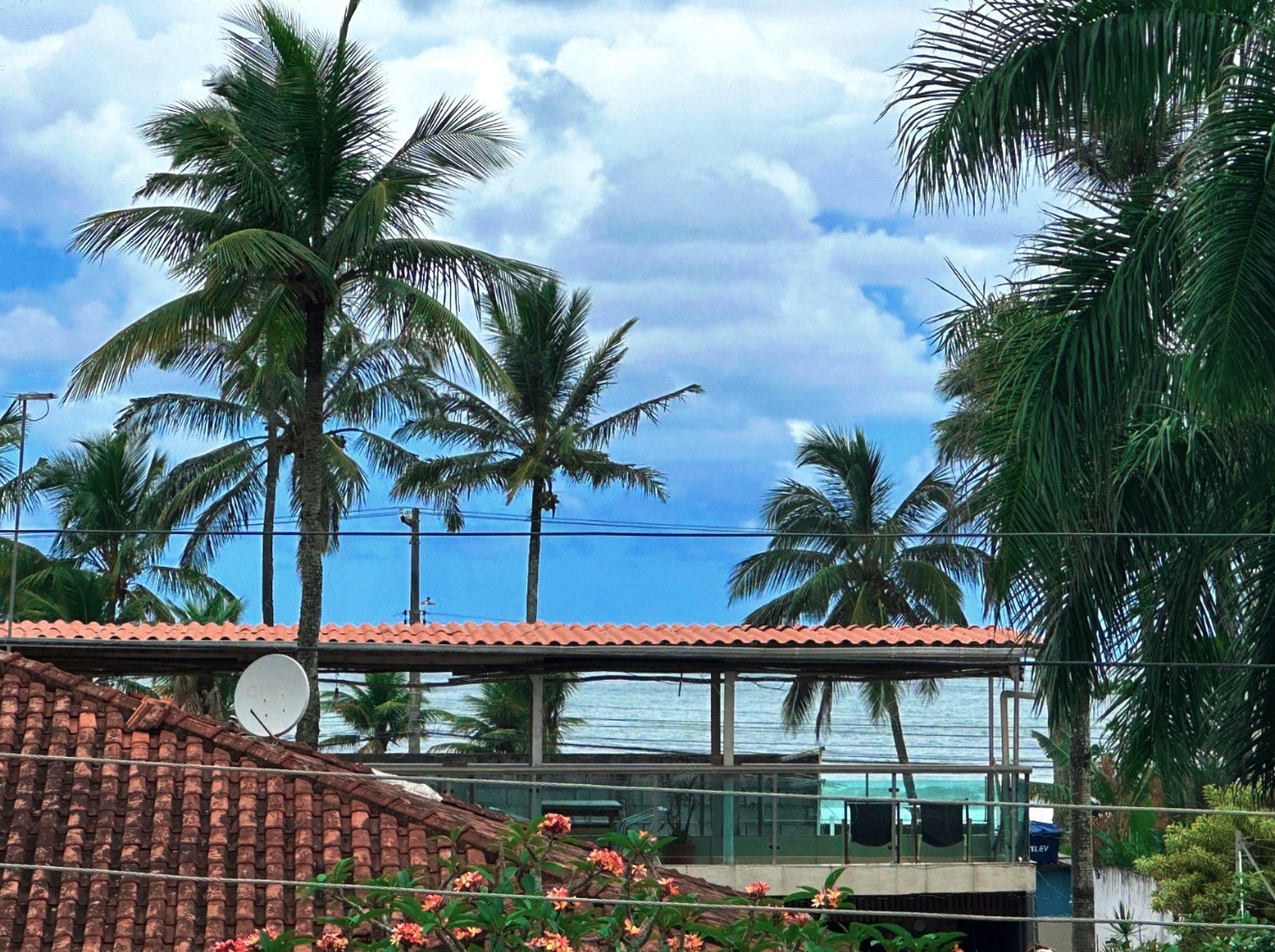 Sua suíte é privativa, enquanto a área comum do Marmeu Tropical encanta com uma piscina bem ampla em meio a uma decoração tropical, espreguiçadeiras e uma rede de descanso entre coqueiros.
