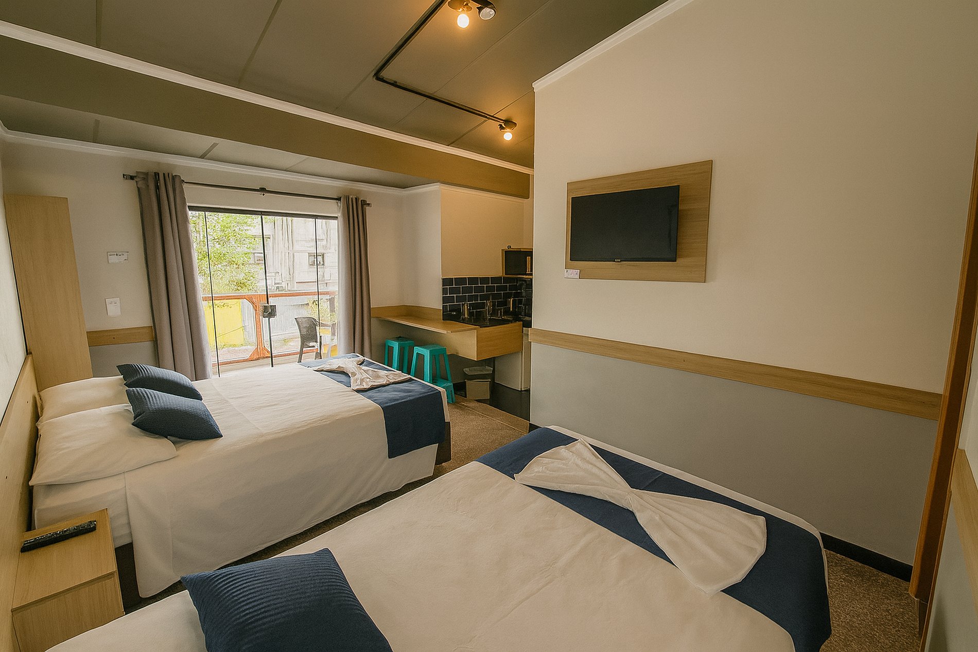 Comodidades modernas: TV Smart, ar-condicionado e Wi-Fi.