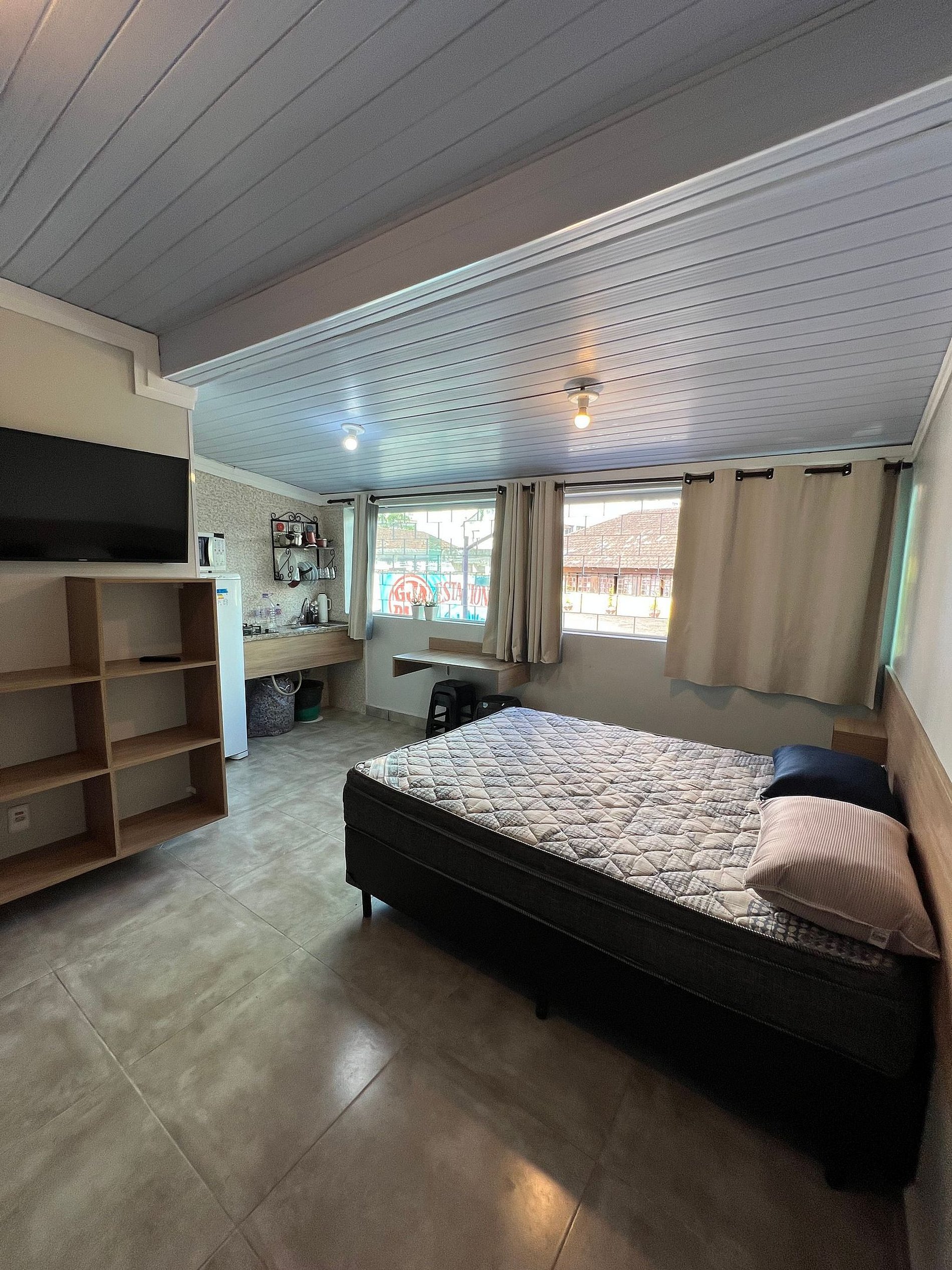Situado no centro de Guarujá, a apenas 280 metros (3 quadras curtas) da praia das Pitangueiras, o Meu Lugar na Praia – Unidade Pitangueiras – dispõe de 7 aconchegantes kitnets. Cada um deles possui uma pequena cozinha com cooktop, geladeira e microondas, quarto e banheiro, TV smart com Netflix e internet wifi com 50 megabytes. Na área comum, o imóvel possui área de lazer com piscina . O horário de funcionamento da piscina é das 9:00 as 20:00 horas todos os dias. É um espaço preparado para que nossos hóspedes possam ficar à vontade em seus dias de lazer. Esta unidade não possui vagas de garagem, mas ao lado há um espaço público com algumas vagas e bem em frente ao imóvel há estacionamento particular com preço acessível.